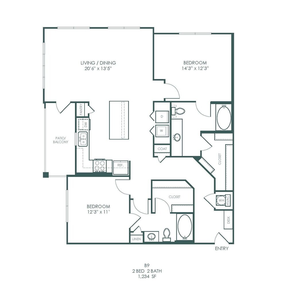 1 Bed, 1 Bath, 754 sq ftModel Gallery