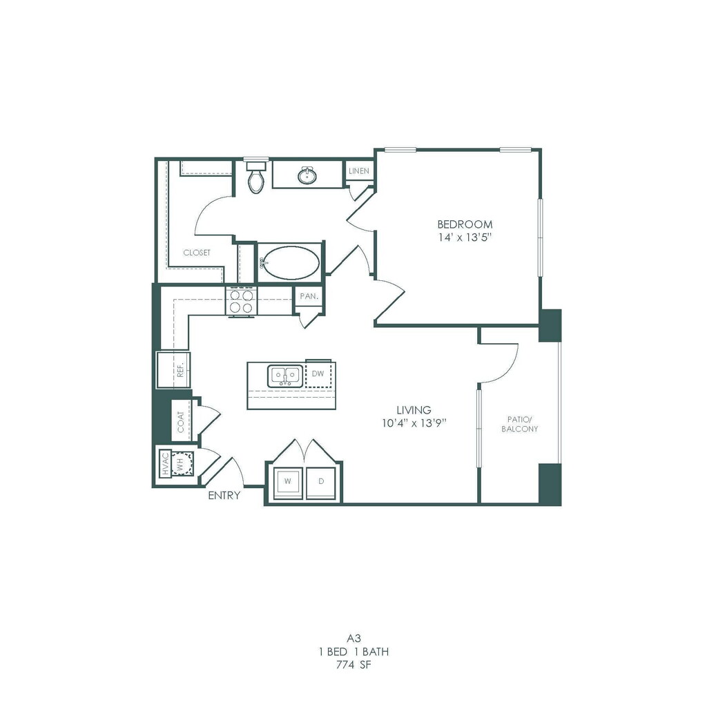A3 - Floorplan 1 Apartment Unit: 14202Apartment Model: A3$1,3691 Bedroom, 1 Bath, 774 sq ftAvailable NowApartment Unit: 6201Apartment Model: A3$1,4111 Bedroom, 1 Bath, 774 sq ftAvailable NowApartment Unit: 8201Apartment Model: A3$1,4111 Bedroom, 1 Bath, 774 sq ftAvailable NowFloorplan A5