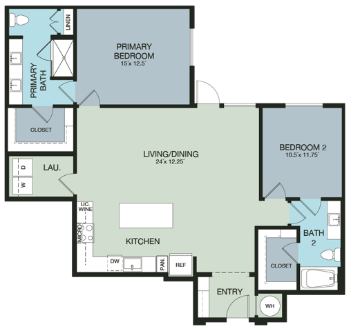 Apartment Model: A2.AFF 140$2,4001 Bedroom, 1 Bath, 798 sq ftAvailable NowFloor plans are artist's rendering. All dimensions are approximate. Actual product and specifications may vary in dimension or detail. Not all features are available in every rental home. Prices and availability are subject to change. Base rent is based on monthly frequency. Additional fees may apply, such as but not limited to package delivery, trash, water, amenities, etc. Deposits vary. Please see a representative for details.