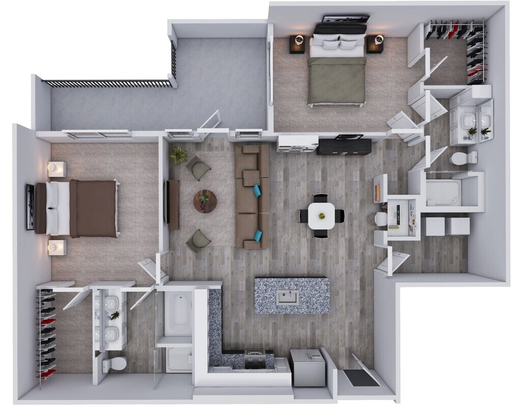 1 Bed, 1 Bath, 741-1256 sq ftAvailable NowLargest 1 BedroomThis is the largest 1 Bedroom at this PropertyModel Gallery