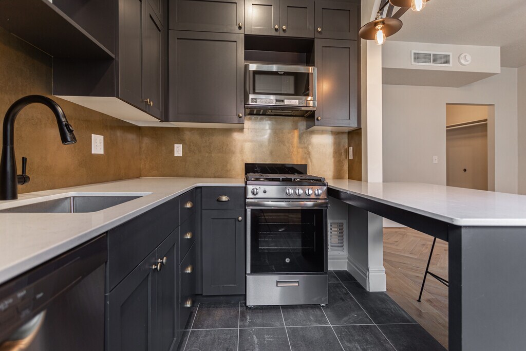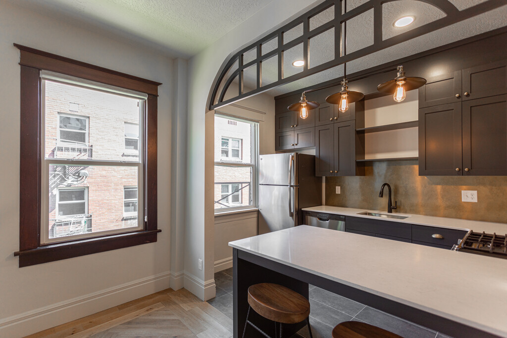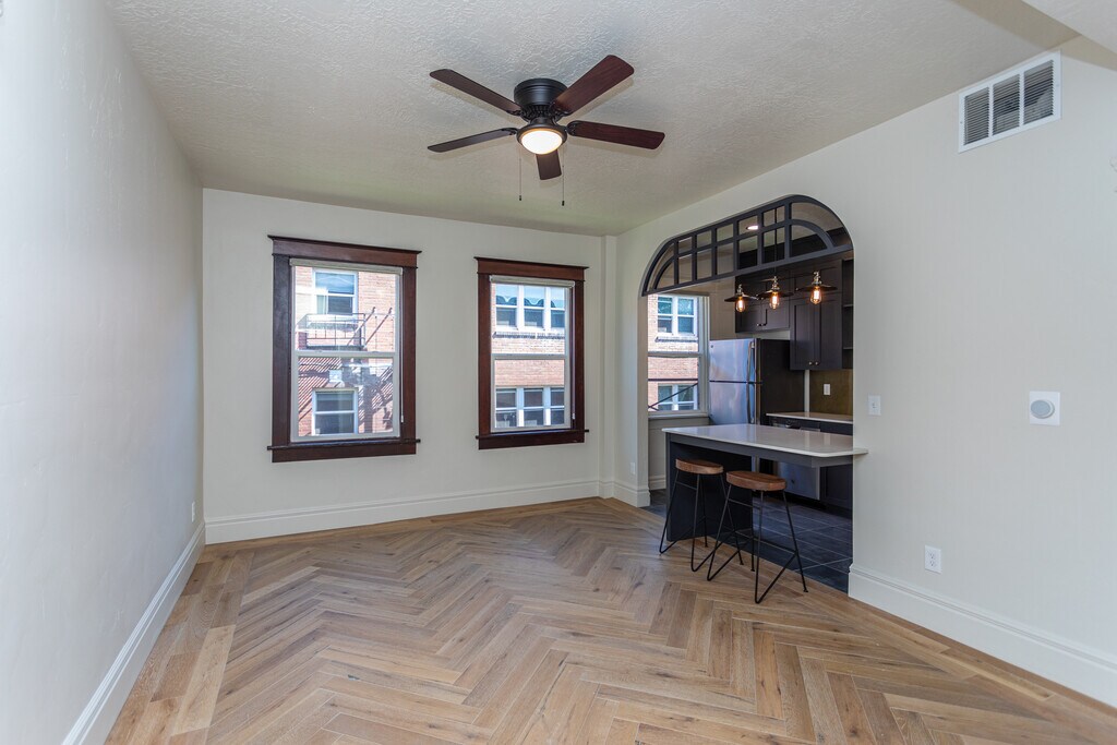 The Jude at 145 S 300 E originally constructed in 1911 was named The Palace for good reason. Its Colonial Revival architecture is the original pre-war style Salt Lake City has to offer with finishes to die for. This property was not simply remodeled; it has been beautifully restored to its original glory with all the modern amenities you want. The woodwork is sublime, and the leather wainscoting will take you back to a time when life was simpler. Units of one or two bedrooms have expansive private balconies, while studios offer the spacious feel of minimalist urban life. Each unit has exceptional hardwood flooring throughout and accent finishes like no other apartment. The kitchens are complete with modern tile and ample cabinetry with lovely hardware. There is ample space to cook with quartz counter tops, a gas range, microwave hood, dishwasher, and refrigerator. The bathrooms are complete with elegant tile surrounding full size tubs or glass surround showers.