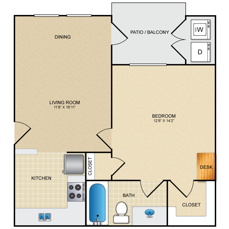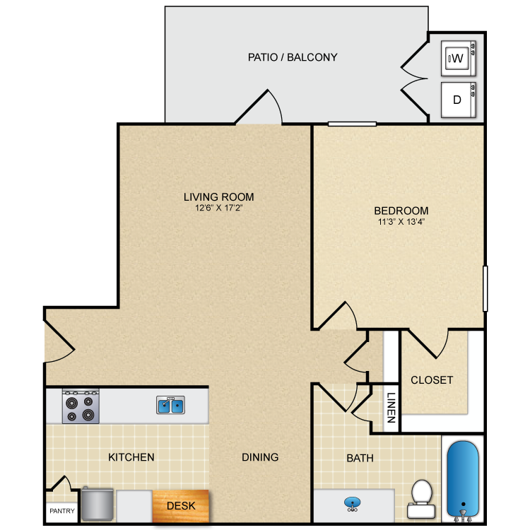 1 Bed, 1 Bath, 597 sq ftAvailable NowModel Gallery