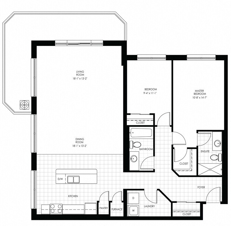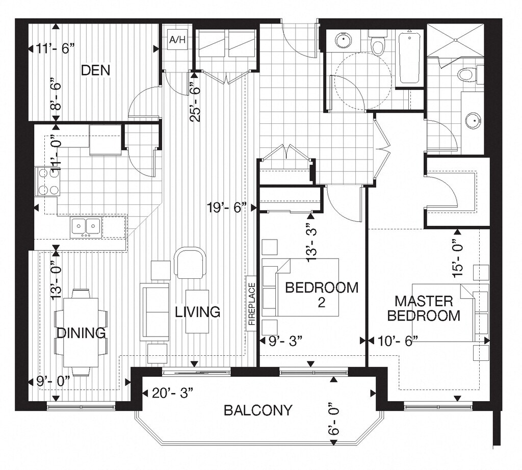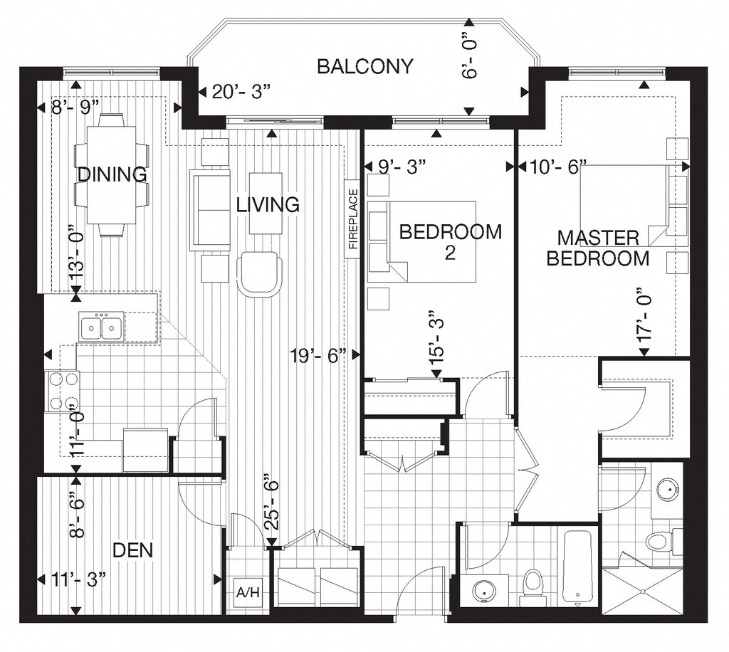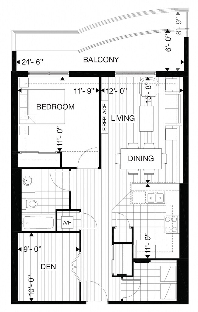 Apartment Model: 505 Finkle - 1 Bed Den 1 Bath A1 Bedroom, 1 Bath, 852 sq ftAvailable Now![]()