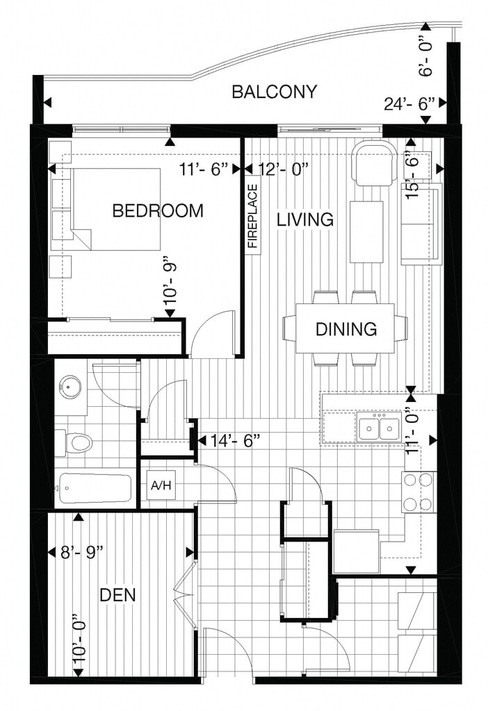 515 Finkle - 1 Bed 1 Bath D - Floorplan 1 515 Finkle - 1 Bed Den 1 Bath B