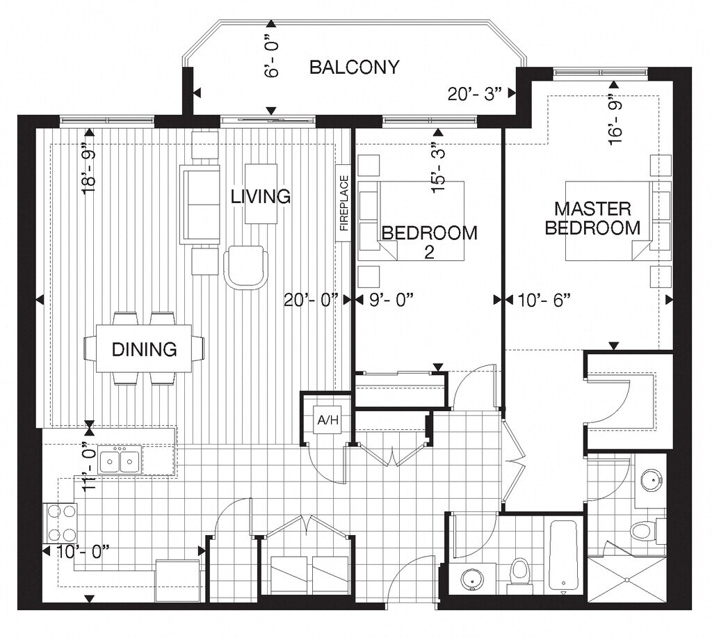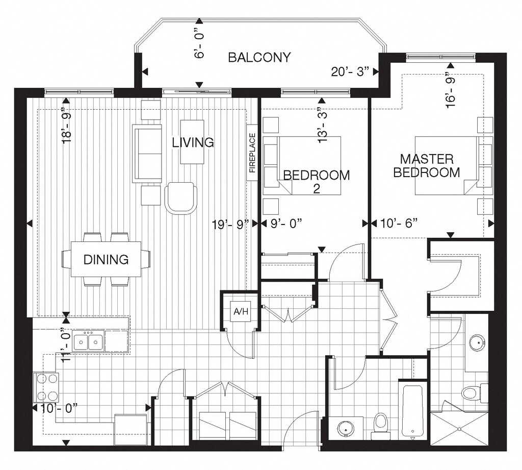 Apartment Model: 505 Finkle - 2 Bed 2 Bath H2 Bedroom, 2 Bath, 1800 sq ftUnavailable![]()