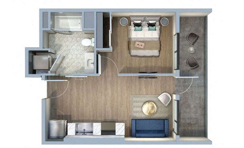 Studio, 1 Bath, 414 sq ftModel Gallery