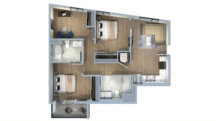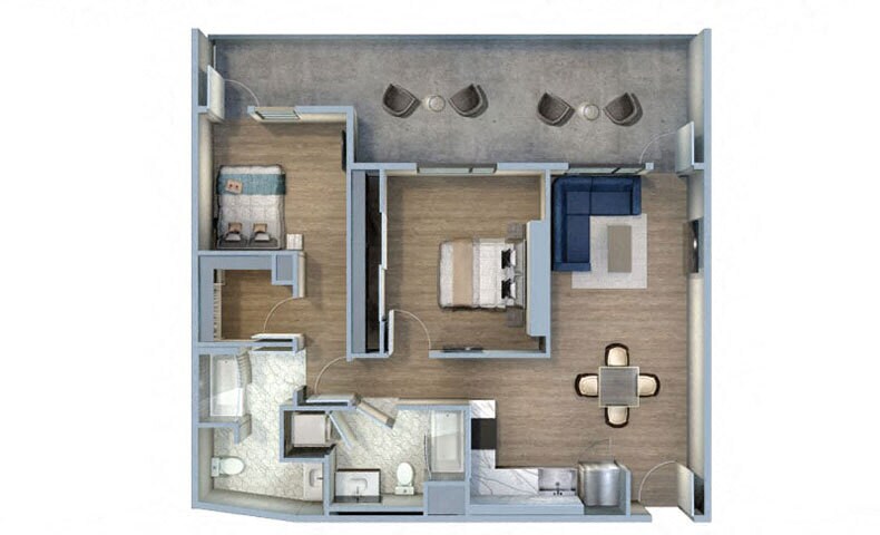 Apartment Model: 1 Bed/1 Bath-1F$2,8751 Bedroom, 1 Bath, 489 sq ftAvailable Now![]()