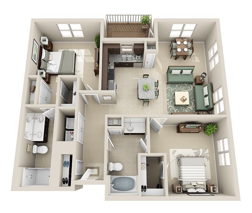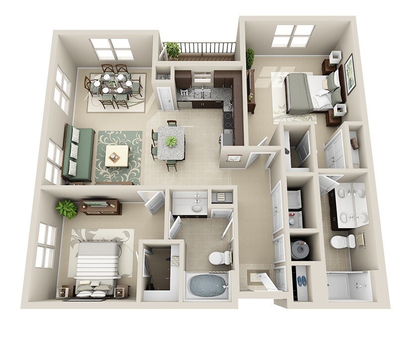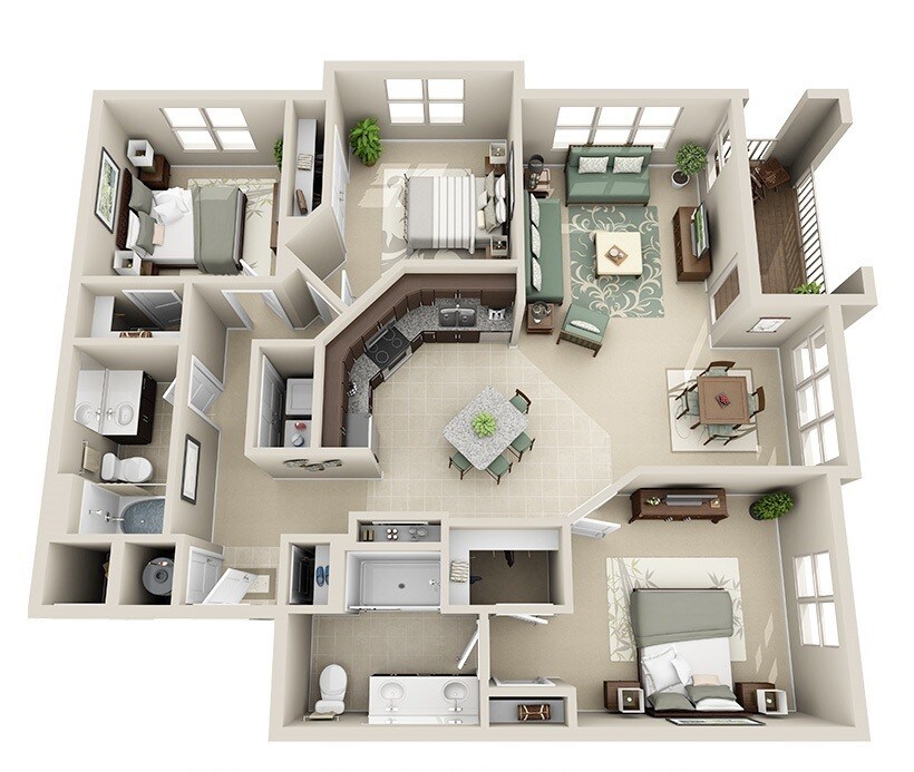 Augusta - Floorplan 3 2 Bedrooms
