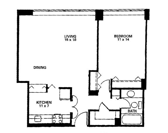 Apartment Model: StudioStudio, 1 Bath, 480-560 sq ftUnavailable![]()