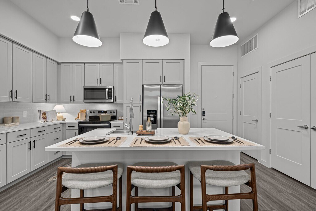 Find your perfect home at Junewood, a newly-built pet-friendly apartment community offering luxury amenities in Buda, Texas. With a variety of spacious and stylish floor plans, living at Junewood allows you to feel good in your living space. Residents enjoy perks like a resort-style pool, co-working spaces, a coffee bar in the lobby, and a resident lounge with game tables perfect for hosting. Our one-, two-, and three-bedroom floorplans are newly-built and designed with sleek appliances, modern countertops, and open-concept living spaces. Select apartments go a step further with attached garages, private backyards, and second floors so our residents can truly feel at home in the floorplan they choose.