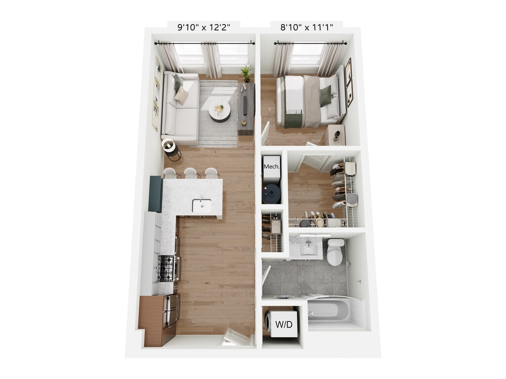 Apartment Model: A10Call For Rates1 Bedroom, 1 Bath, sq ftUnavailableFloor plans are artist's rendering. All dimensions are approximate. Actual product and specifications may vary in dimension or detail. Not all features are available in every rental home. Please see a representative for details.