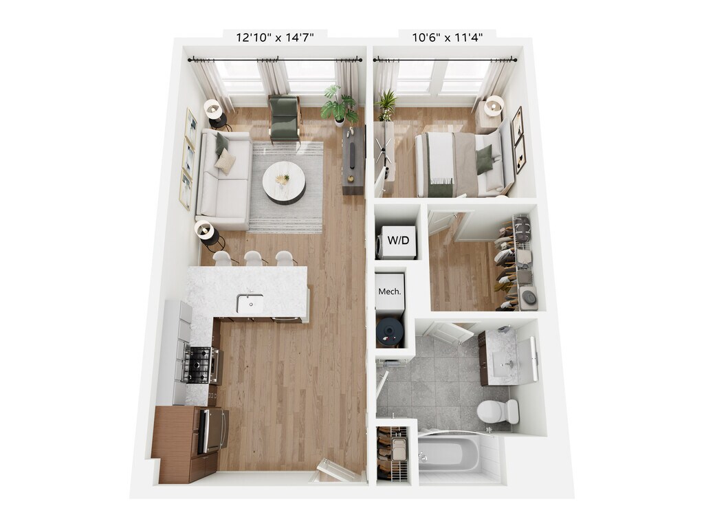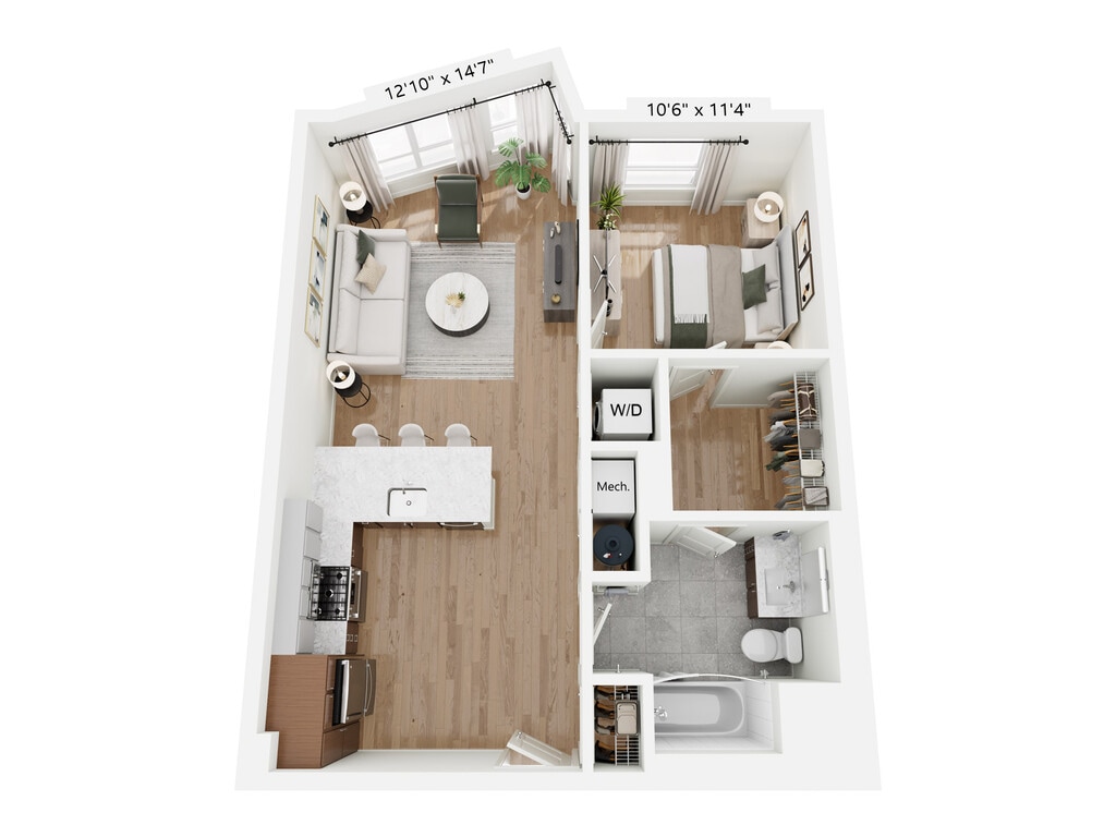 Apartment Model: A6HCall For Rates1 Bedroom, 1 Bath, sq ftUnavailableFloor plans are artist's rendering. All dimensions are approximate. Actual product and specifications may vary in dimension or detail. Not all features are available in every rental home. Please see a representative for details.