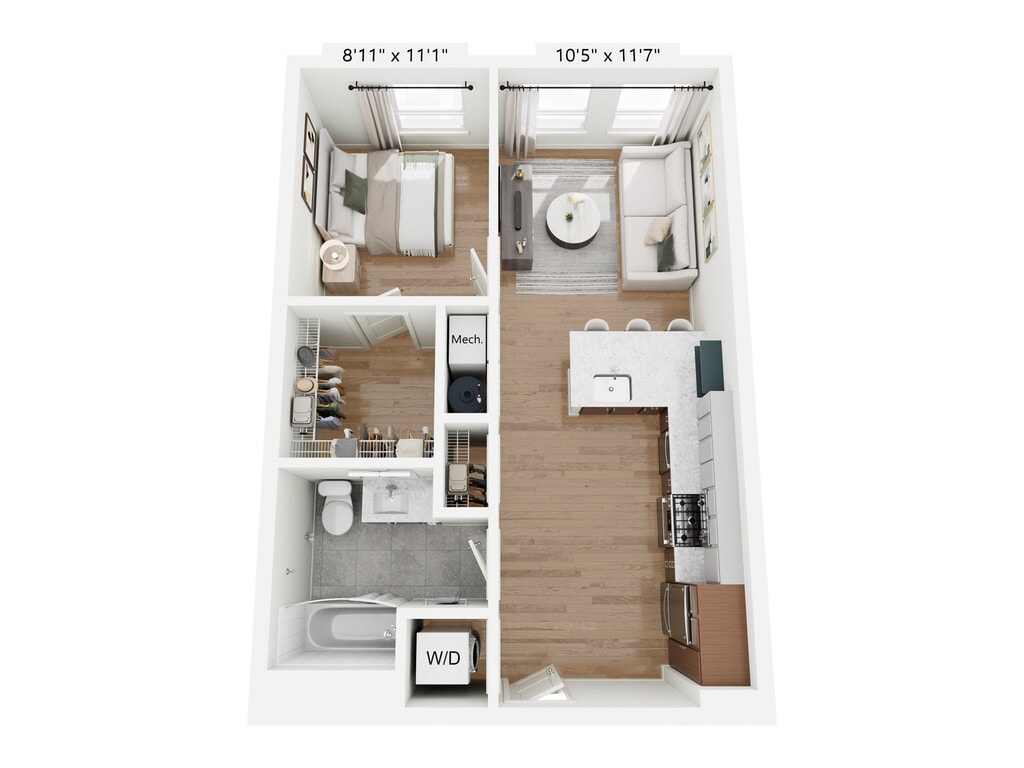 Apartment Model: A11HCall For Rates1 Bedroom, 1 Bath, sq ftUnavailableFloor plans are artist's rendering. All dimensions are approximate. Actual product and specifications may vary in dimension or detail. Not all features are available in every rental home. Please see a representative for details.