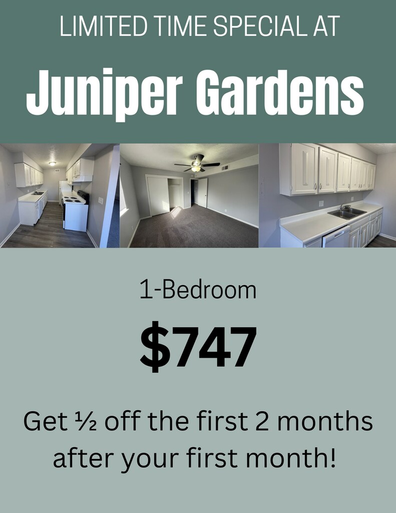 Studio to 1 Bedroom Apartments at Juniper Gardens currently range from $697 to $897