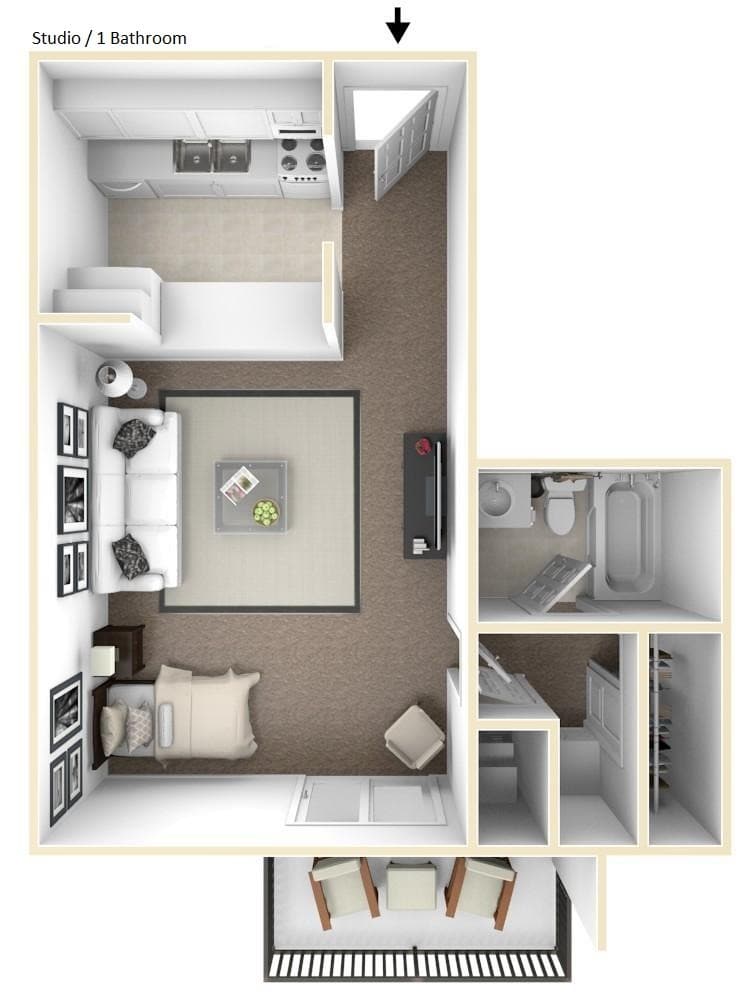 Studio, 1 Bath, 400 sq ftAvailable NowModel Gallery