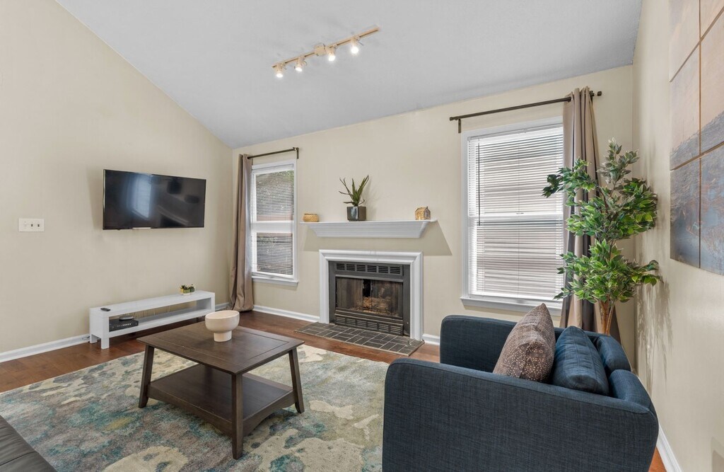 Welcome to Juniper Condos, a stunning two-bedroom, one-bathroom apartment located in the vibrant city of Atlanta, GA. This apartment boasts a two-story living space that is both spacious and inviting. The primary suite is conveniently located on the main level, offering easy access and comfort. The kitchen is equipped with modern stainless steel gas appliances, perfect for those who love to cook. The unit also includes a washer and dryer, adding convenience to your daily routine. The decorative fireplace adds a touch of elegance and warmth to the living area, making it the perfect place to relax or entertain. Step outside to the cozy patio, a perfect spot to enjoy your morning coffee or unwind after a long day. Experience the perfect blend of comfort and style at Juniper Condos.