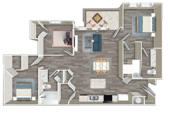 Apartment Model: Three BedroomFrom $1,4323 Bedroom, 2 Bath, 1139 sq ftAvailable NowFloorplansPhotos![]()