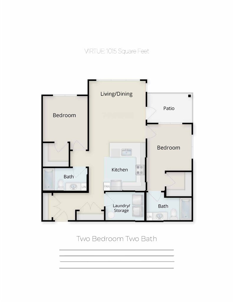 2 Beds, 2 Baths, 1015 sq ftAvailable NowModel Gallery