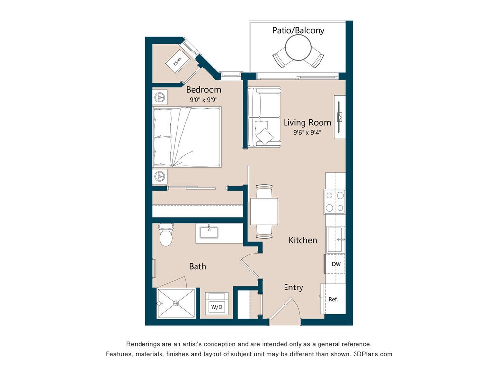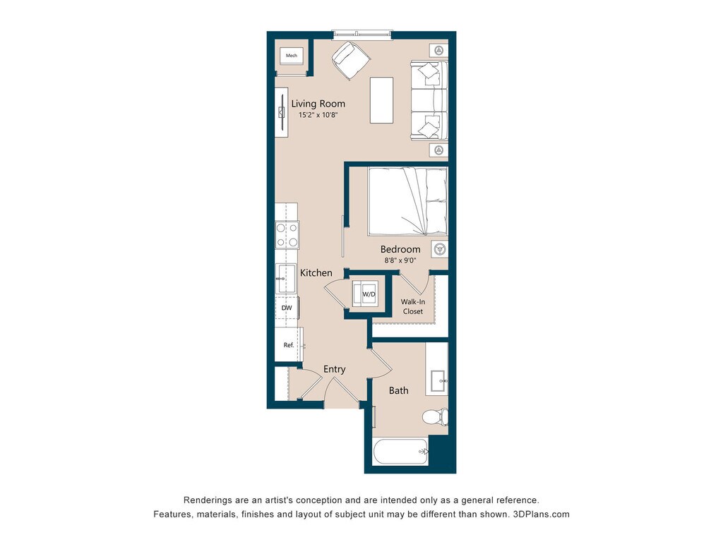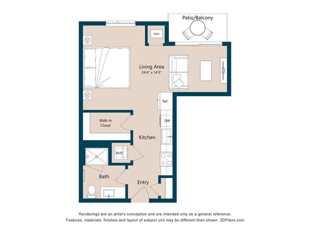 Studio, 1 Bath, 588 sq ftModel Gallery
