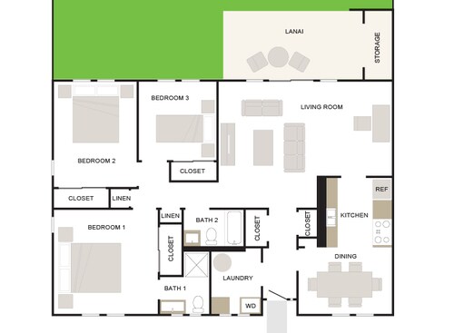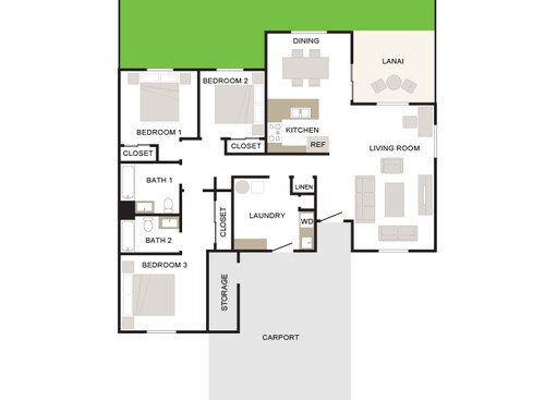 Makai 2/1 1394sf Townhome - Floorplan 1 3 Bedrooms