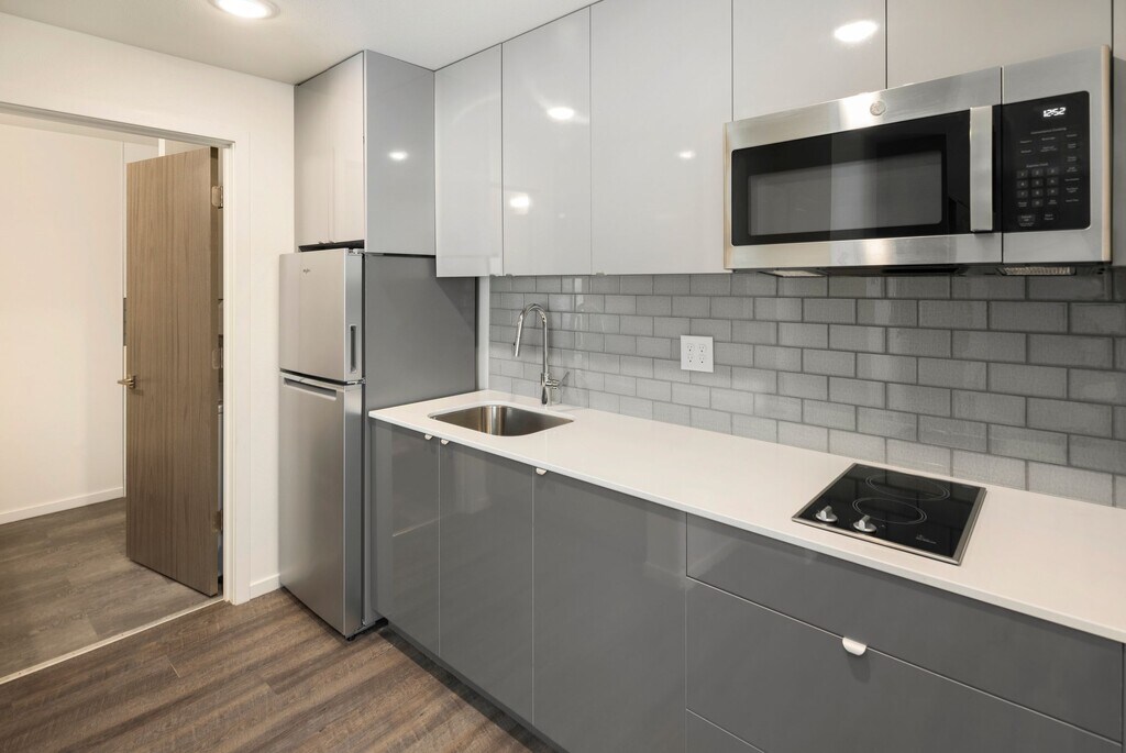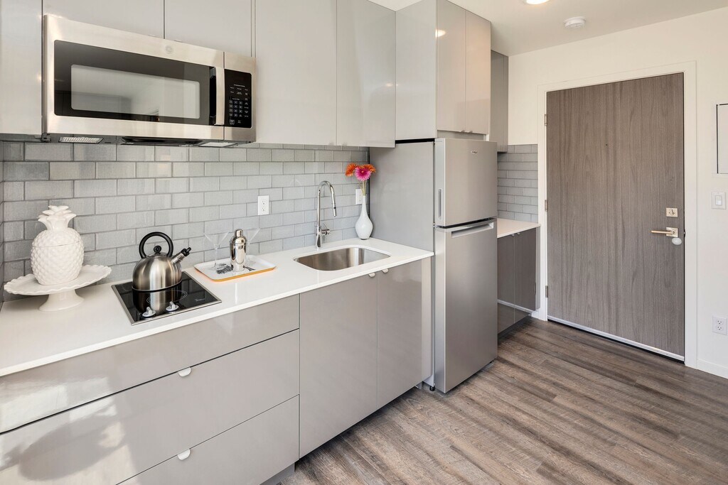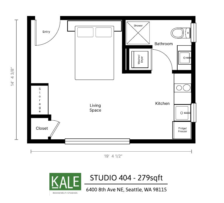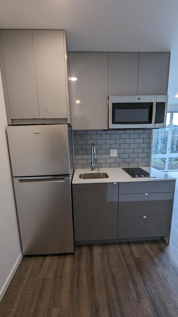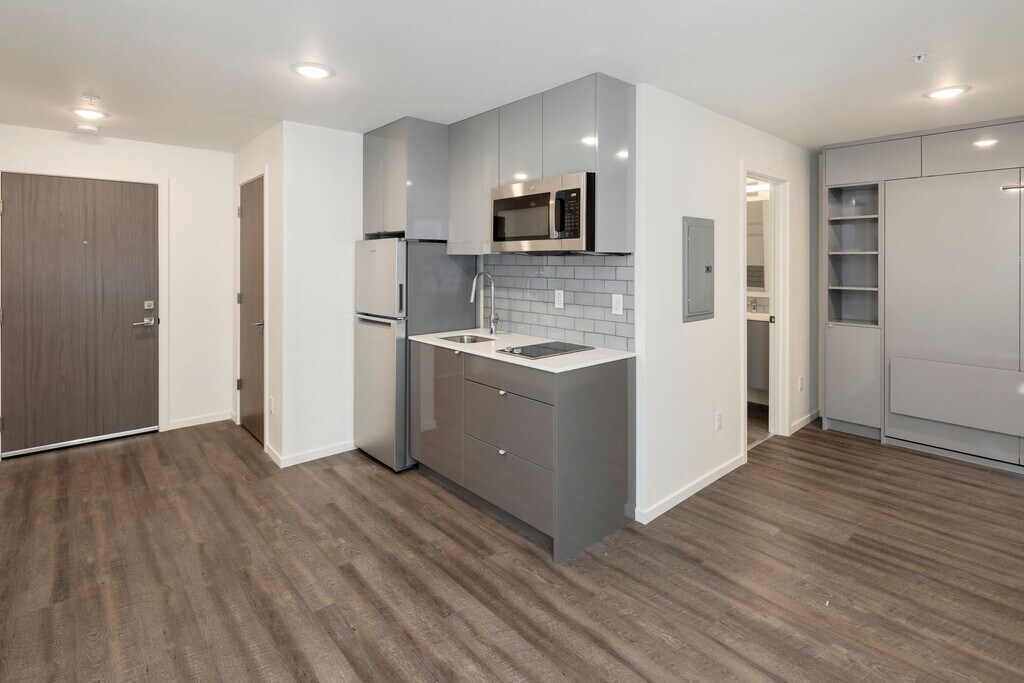 1 Unit available Unit 205 - (With Balcony) Welcome to Kale Apartments! Our brand-new studio apartments are located in the Roosevelt District. Great location within walking distance of local amenities. Our apartments are modern and minimalistic to provide you with a competitive price. The neutral interior allows you to decorate to fit your individual style. Each unit includes a mattress, a kitchenette, and your own washer and dryer for your convenience. We also have a bike storage area available. Only a 5-minute walk to Whole Foods, LA Fitness, and the Roosevelt Square Mall. Less than a 10-minute walk to access a variety of coffee shops, bars, and restaurants. We are also just a 3-minute walk from the Green Lake Park and Ride and 7 from the Roosevelt Light Rail Station allowing you to easily travel anywhere. Please E-MAIL or MESSAGE us, as we are experiencing high demand and call volume and may not be able to answer every call. Building Features: - Controlled access entry with direct-to-mobile intercom - Acoustically insulated walls, floors and ceilings - Controlled access to bike racks - Picnic Area - Smoke-free community - 4-Star Built Green® for lower utility bills - Bike-friendly community and building - Online rent payment and maintenance requests Unit Features: - Washer and dryer included - ENERGY STAR stainless steel appliances. Including microwave, built-in two burner electric cooktop, & refrigerator - Energy-efficient lighting - Wood-style flooring Units offer the following built-in features: -- Murphy bed with full-size mattress included -- Retractable dining room table -- Ample storage space