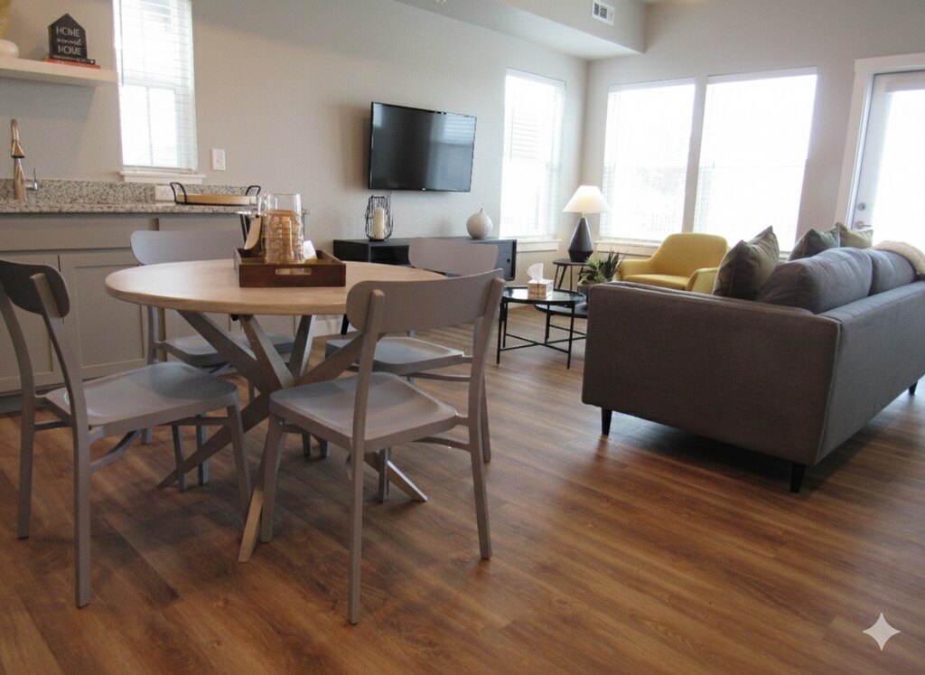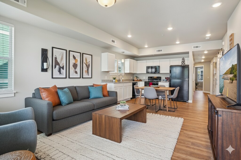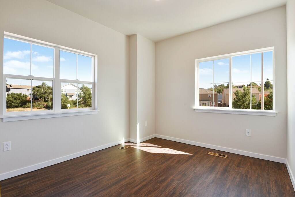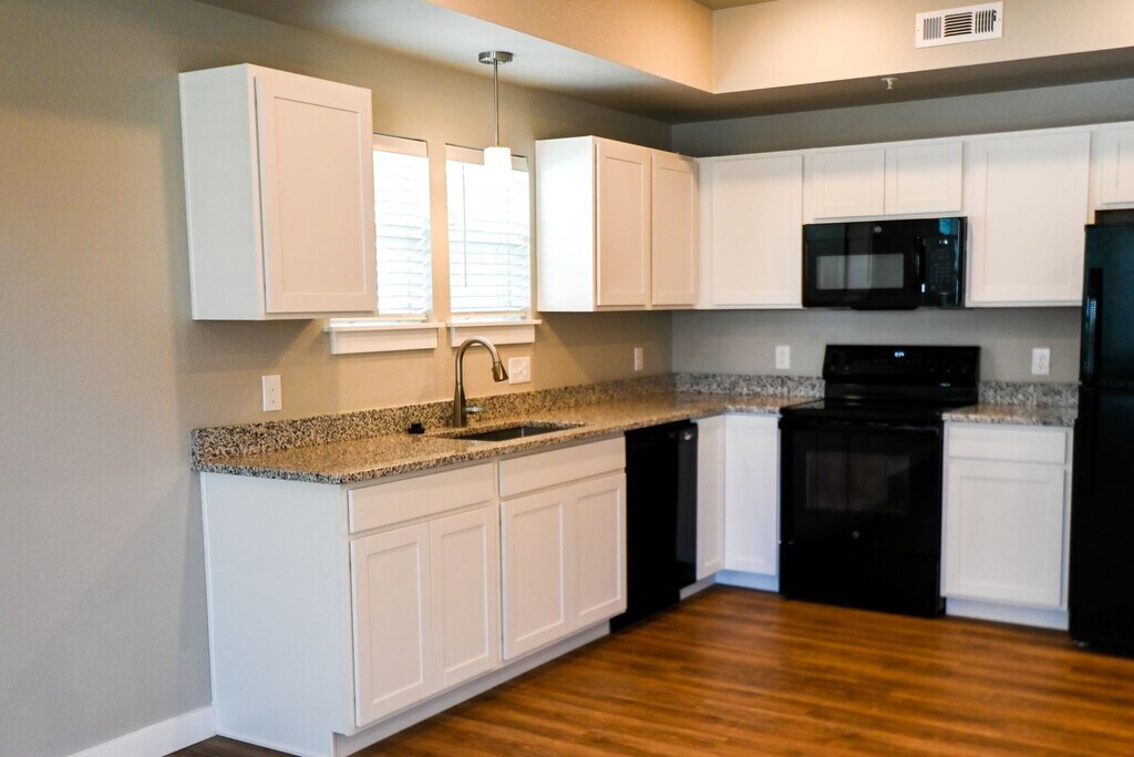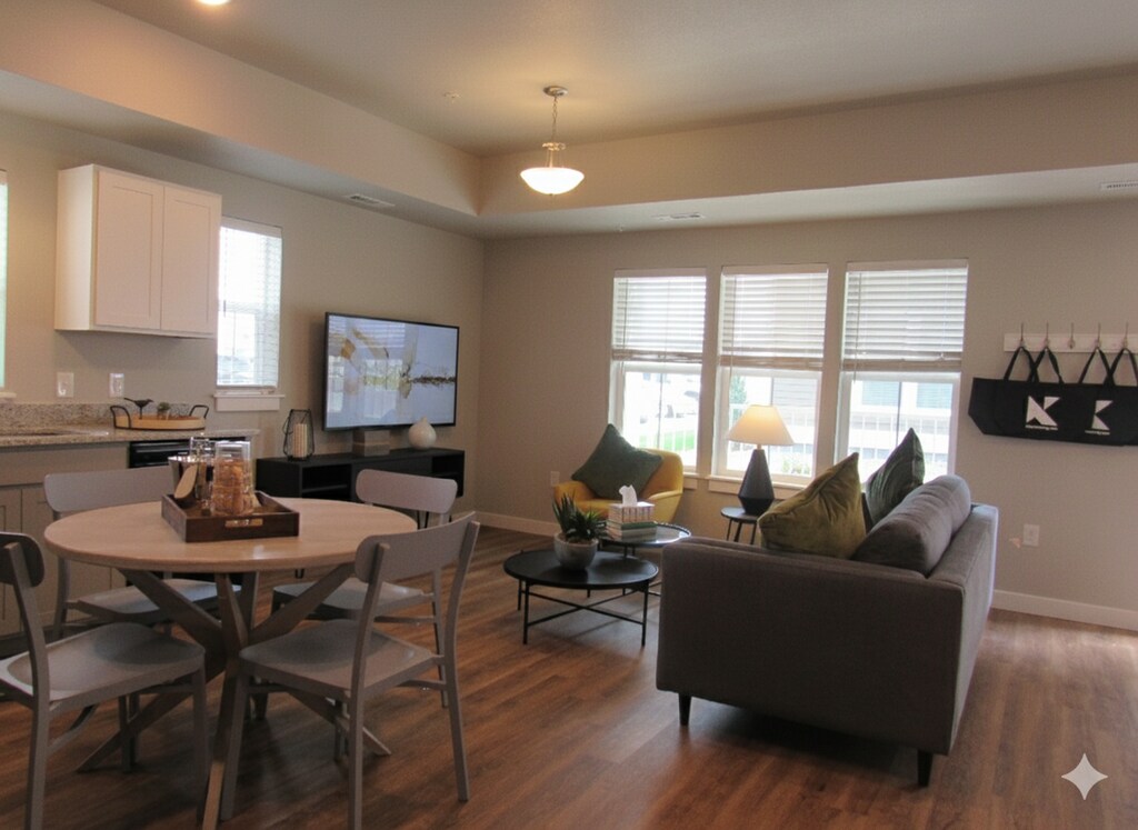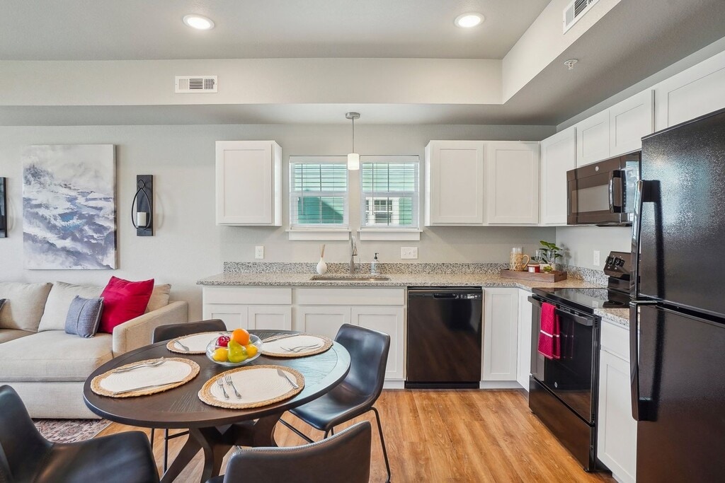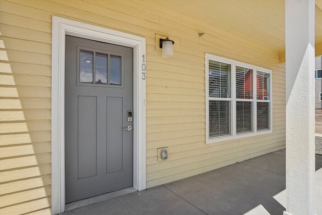 Welcome to Kaleidos, a brand new thoughtfully designed apartment community shifting the pattern of life with a new perspective by creating a dynamic place to live, connect, and belong. Nestled in southeast Colorado Springs each unit offers a great house style design with a private keyless entrance leading directly inside to a warm and inviting atmosphere. Step inside the Amber unit, a 1 bedroom, 1 bathroom single story modern concept living space with beautiful hardwood-style flooring throughout. The stylish kitchen has a stainless steel farmhouse sink, granite countertops, solid wood cabinets and an abundance of natural light flooding the space. The built-in shelves and large closets offer ample room for your belongings, keeping your home organized and clutter free. Meet the neighbors exploring your backyard one paw at a time in this pet friendly paradise! Our apartment community is designed with your furry companions in mind. Your dog will love the conveniently located dog park, where they can socialize and play with other four-legged friends. For those serene strolls and a bit more exercise, head over to the nearby Sand Creek Trail, offering peaceful pathways perfect for a long, relaxing walk. Both your pets and you are sure to feel right at home! The only thing this cozy apartment is missing is you. Lease today! No extra charge for contentment and relaxation. Furnished Units Available! Extra insulation, Energy Star appliances, double pane windows, and energy-efficient heat pump and cooling system translate to lower utility costs for you.