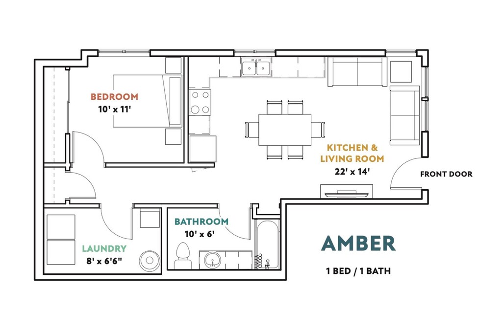 Apartment Model: AmberFrom $1,3201 Bedroom, 1 Bath, 654 sq ftAvailable NowFloorplansPhotos![]()