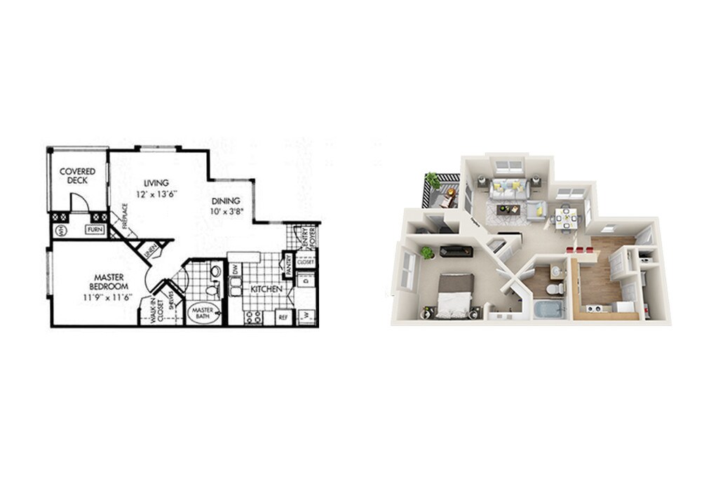 Apartment Model: Deer Creek$1,3301 Bedroom, 1 Bath, 641 sq ftAvailable December 10, 2025![]()