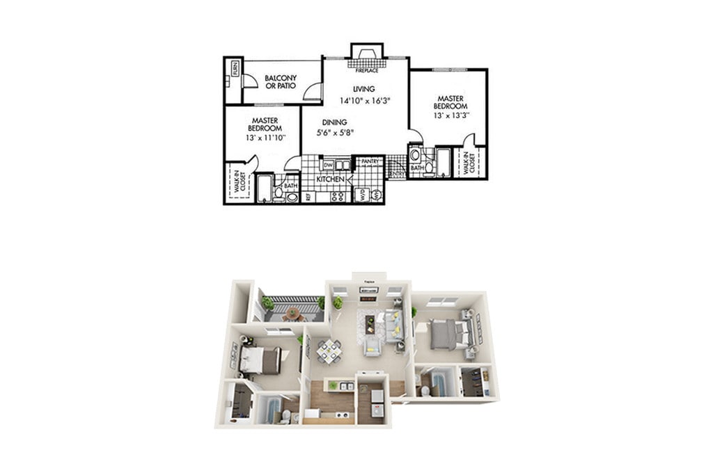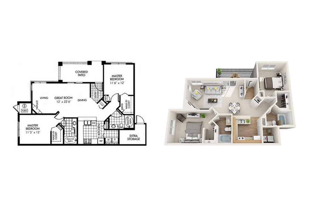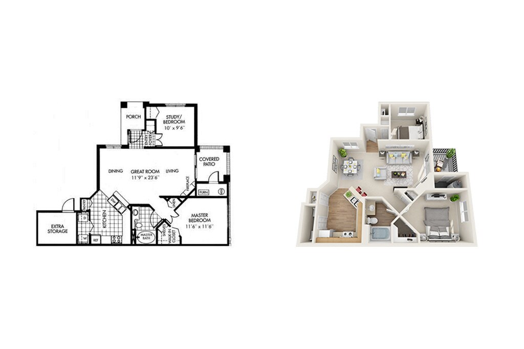 Apartment Model: Paradise Creek$1,7201 Bedroom, 1 Bath, 803 sq ftAvailable Now![]()