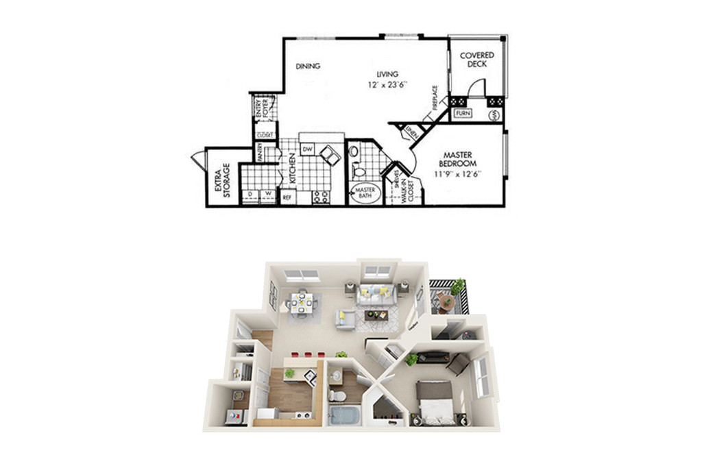 1 Bed, 1 Bath, 707 sq ftAvailable NowModel Gallery