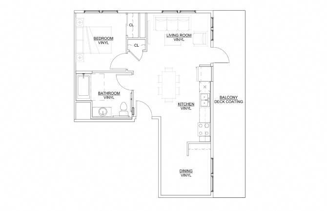1 Bedroom 1 Bath Plan E - Floorplan 1 Bedroom 1 Bath Plan C