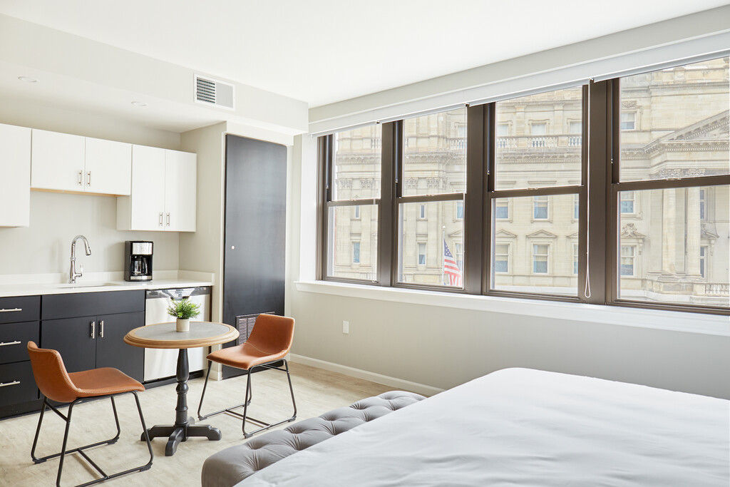 FREE DECEMBER RENT when you move in this week! Cadillac Square boasts Fully Funished studio to 2 bedroom apartments. All utilities, wi-fi and funishings included in the monthly rent. Enjoy the best of Detroit right outside your door at Kasa Cadillac Square, where elements of the past blend with modern touches. Our spacious rooms offer stunning city views, fully equipped kitchens, and in-unit laundry. You'll have easy access to the 7-11 on our ground floor, as well as nearby restaurants, parks, and entertainment venues. Our tech-enabled apartments offer self check-in at 4pm, 24/7 guest support by text, phone, or chat, and a Virtual Front Desk accessed via mobile device.