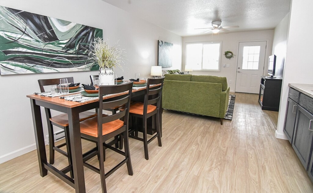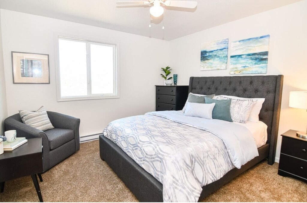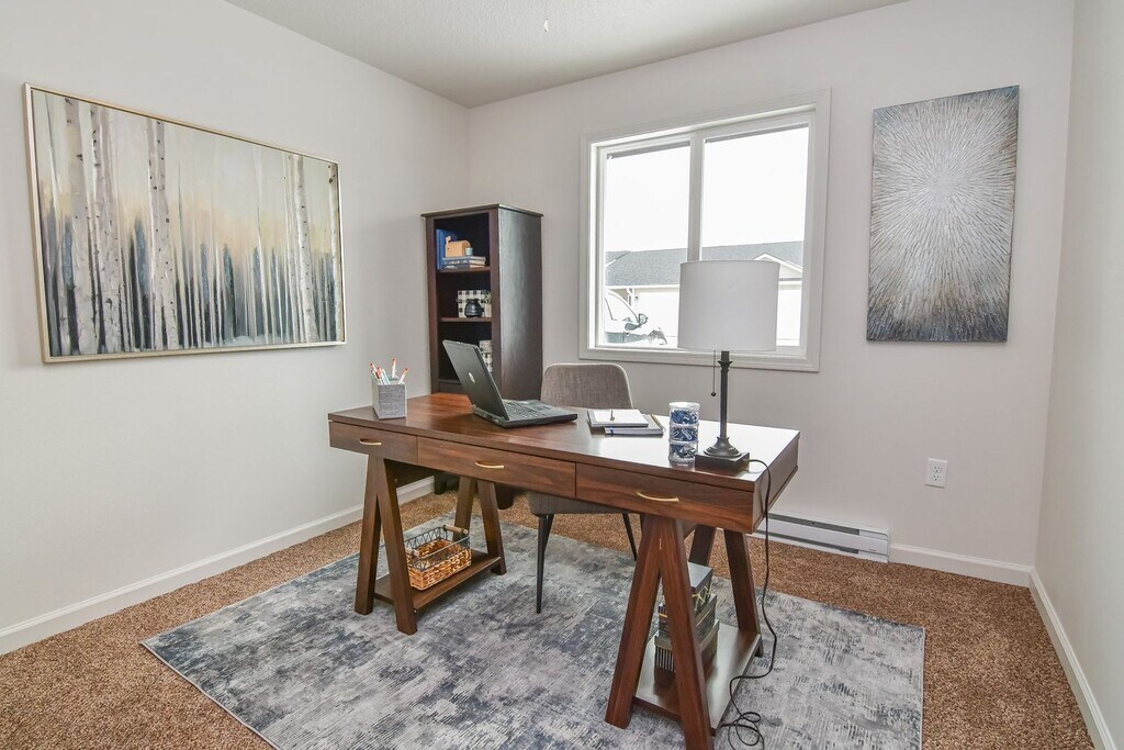 Did you know you could lease a ranch style townhome for about the same cost as renting an apartment? The conveniences of an apartment with the enjoyment of your own front door, yard and attached garage. Upgrade your apartment experience to townhome living with Kading! We offer affordable living with desired amenities such as washer/dryer hook-ups, cable ready units, air conditioning, vinyl plank flooring in all common areas and carpeted bedrooms. Open concept floor plans provide ultimate flexibility to decorate your personal space and make it your own. Let your kids enjoy a space to play – whether your little humans or your little fur babies. Lawn care, snow management, pet stations, and 24-hour emergency maintenance are provided. We take on the upkeep so you can take back your time!