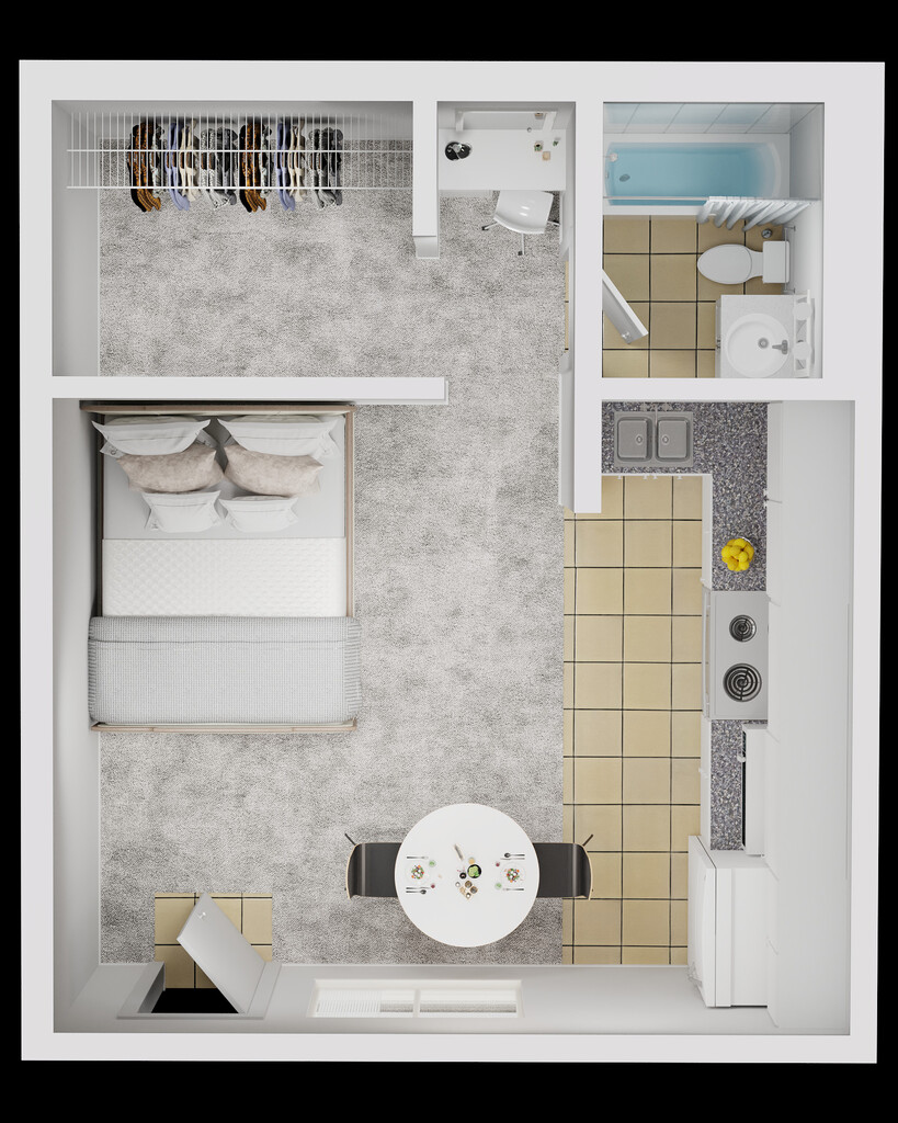 Apartment Model: StudioFrom $699Studio, 1 Bath, 390 sq ftAvailable NowFloorplansPhotos![]()