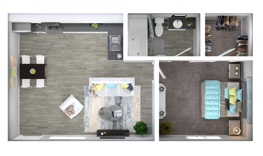 Studio, 1 Bath, 390 sq ftTotal Monthly PriceAvailable NowModel Gallery