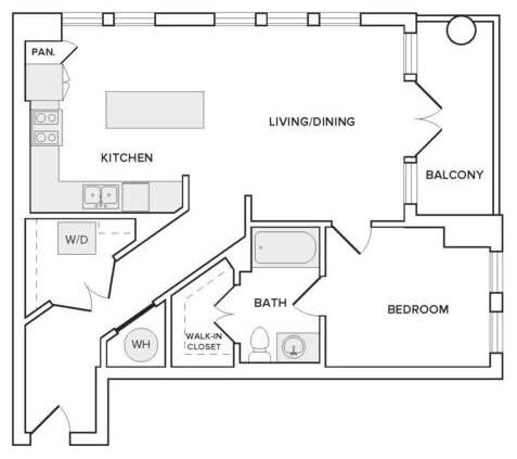 A4 - Floorplan 1 Apartment Unit: 0609Apartment Model: A4Call For Rates1 Bedroom, 1 Bath, 895 sq ftAvailable January 21, 2026Floorplan PH1