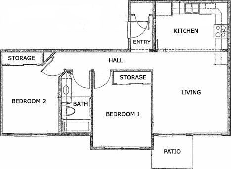 Apartment Model: 2 Bed2 Bedroom, 1 Bath, 828 sq ftUnavailable![]()