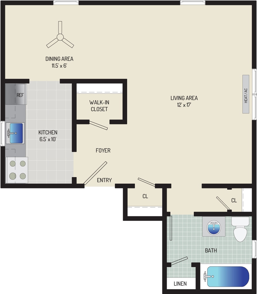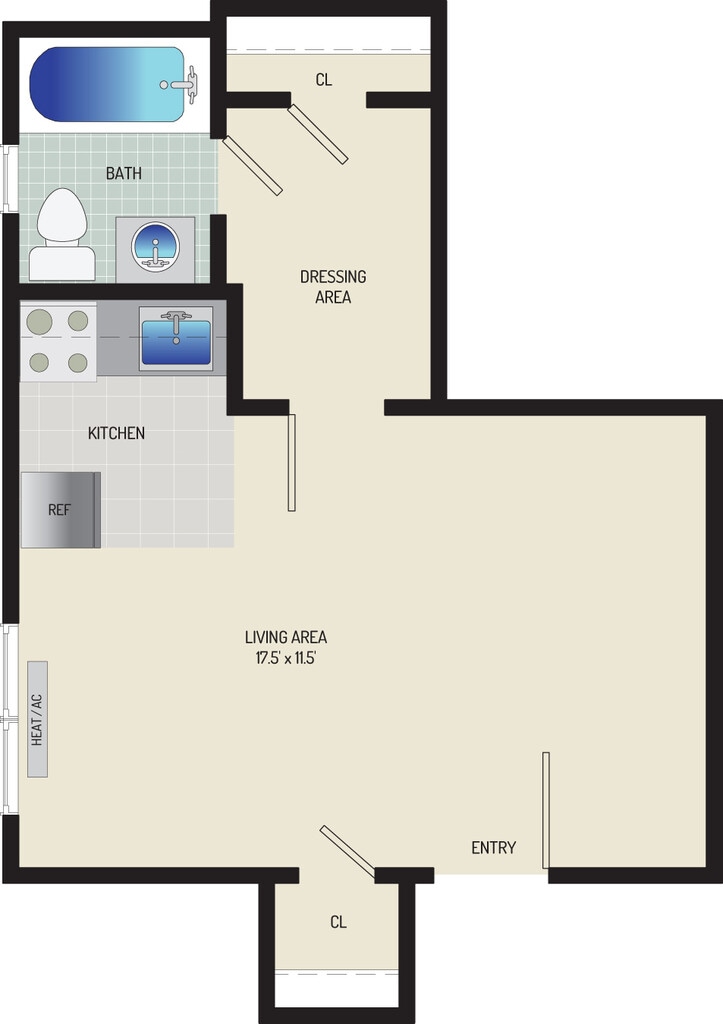 Studio, 1 Bath, 330-605 sq ftModel Gallery