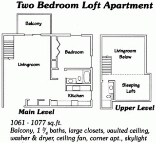 2 Bedroom 2 Bath Loft - Floorplan 1 2 Bedroom 2 bath Spiral Loft