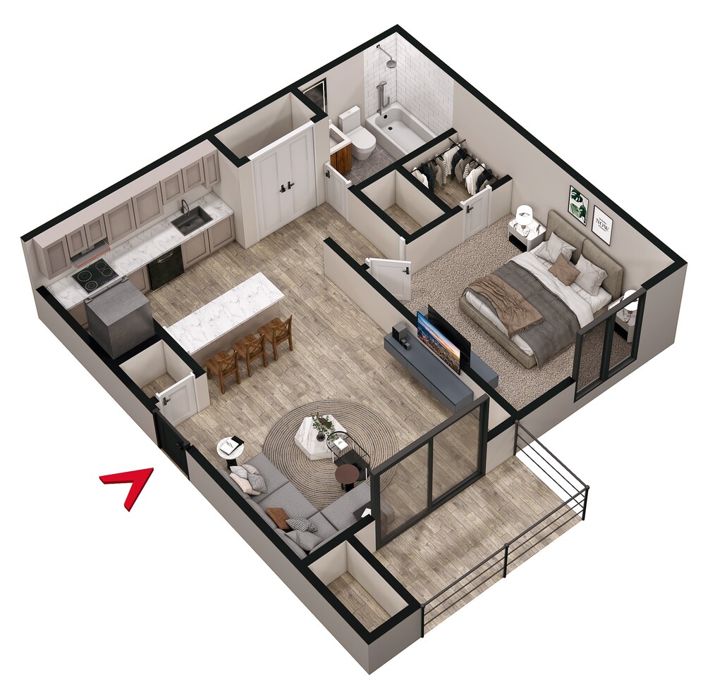 1 Bed, 1 Bath, 712 sq ftAvailable NowModel Gallery