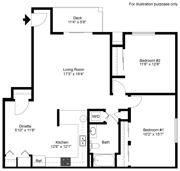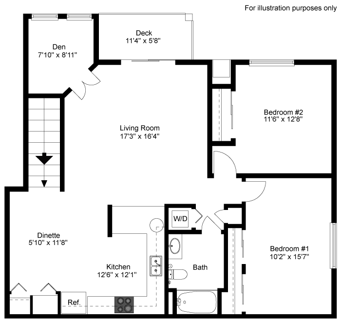 Apartment Model: Floor Plan "D"$1,5752 Bedroom, 1 Bath, 1100 sq ftAvailable NowFloorplansPhotos![]()