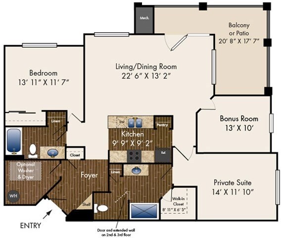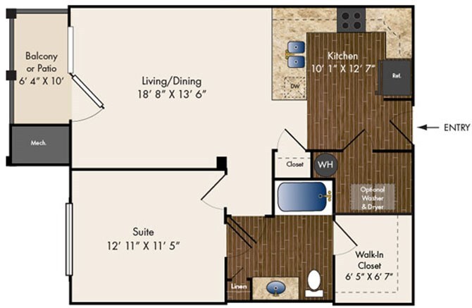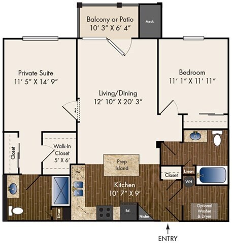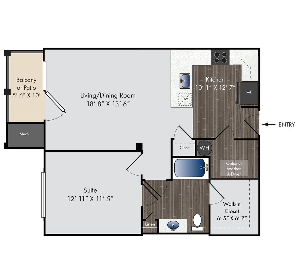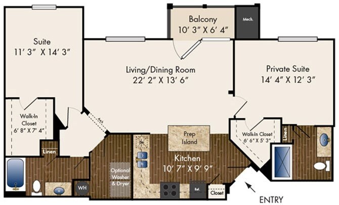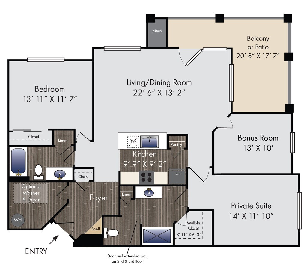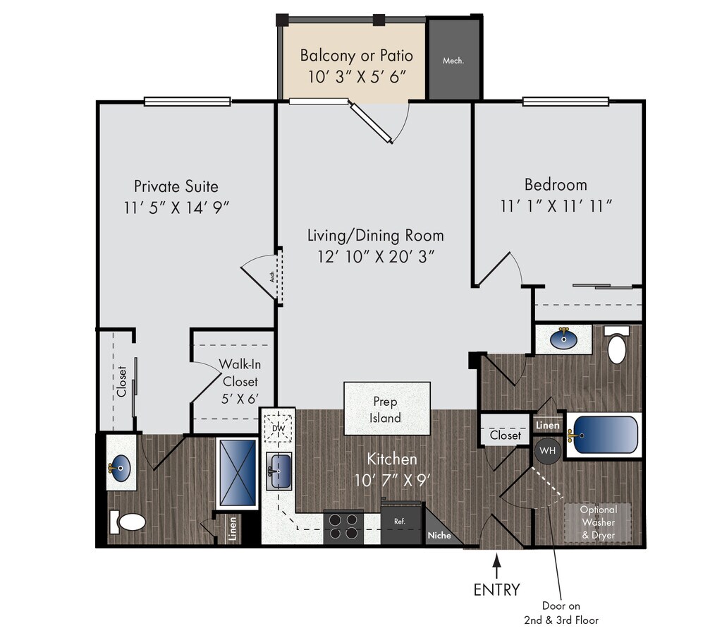 1 Bed, 1 Bath, 1068-1105 sq ftLargest 1 BedroomThis is the largest 1 Bedroom at this PropertyModel Gallery