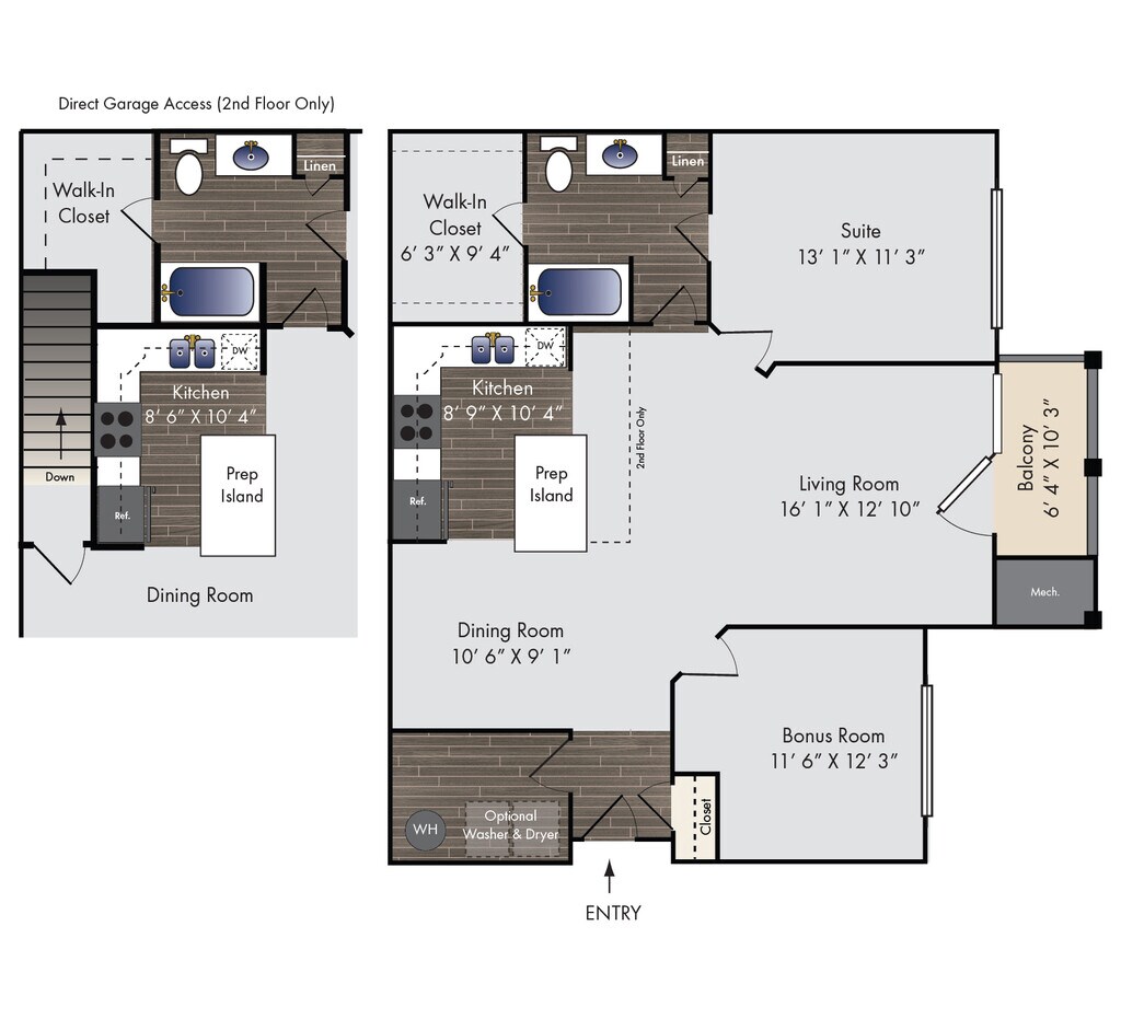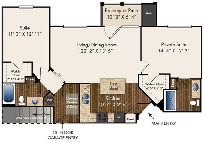 2 Beds, 2 Baths, 1174 sq ftModel Gallery