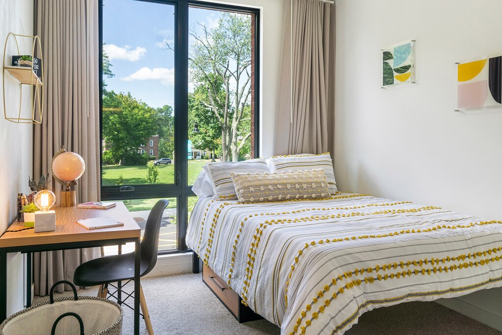 Kendrick Place is a LEED Gold certified apartment community located in downtown Amherst. Living in the middle of all the action, you'll be able to walk to your favorite restaurants, shops, and cultural destinations, all within sight of UMASS Amherst and Amherst College. All of our apartments feature floor to ceiling windows, custom window treatments, wood-style floors, and a laundry machine. The community also offers 1-gigabit speed internet, keyless entry, and bike storage.
