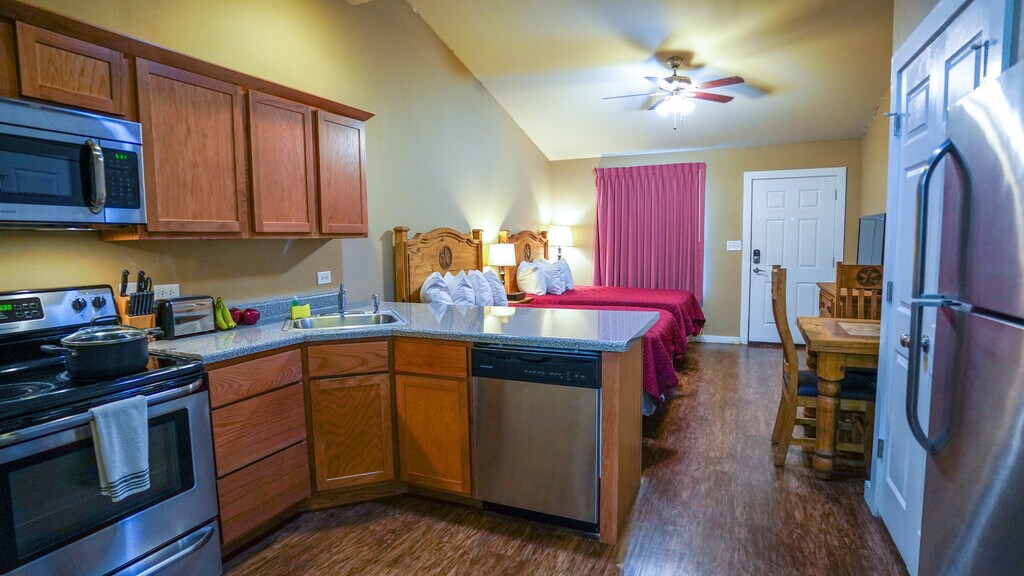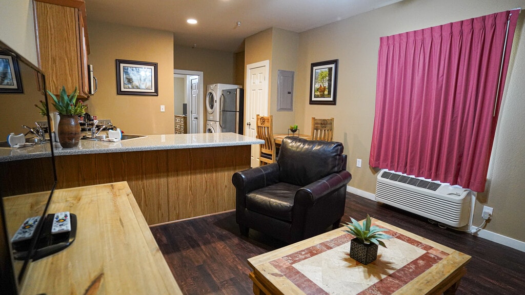 Kenedy Retreat's fully furnished apartments offer several spacious floor plans to choose from making for the ideal, comfortable stay while in Kenedy, TX. This one of a kind complex is packed with amenities including an indoor-outdoor recreation area and/or meeting center conveniently located in the center of the complex for your enjoyment. All utilities are included in addition to full-sized appliances, all housewares and linens, expanded cable and internet, housekeeping, and more. The one-bedroom apartments offer the flexibility for the traveling workers to be set up as single or double occupancy.