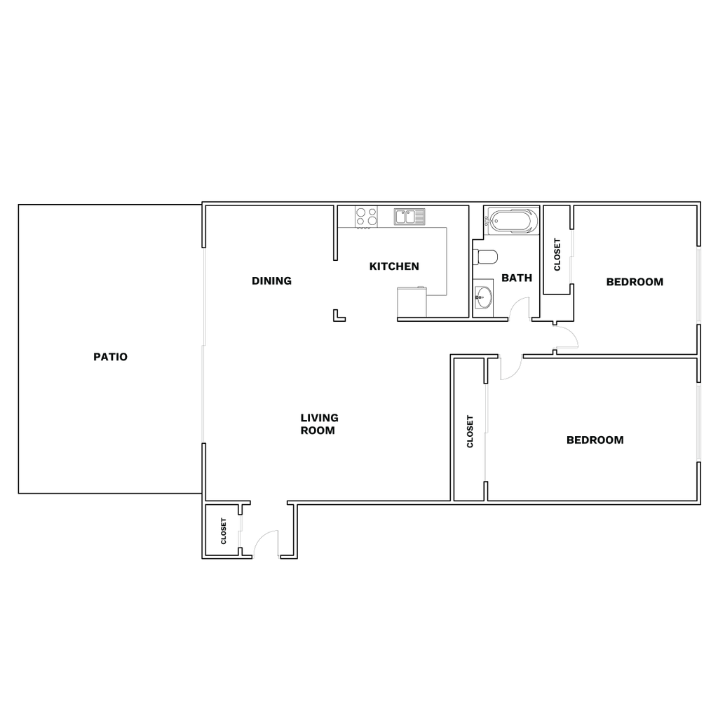 Apartment Model: Granada B Renovated | 2 Bed | 1 Bath2 Bedroom, 1 Bath, 1057 sq ftAvailable Now![]()