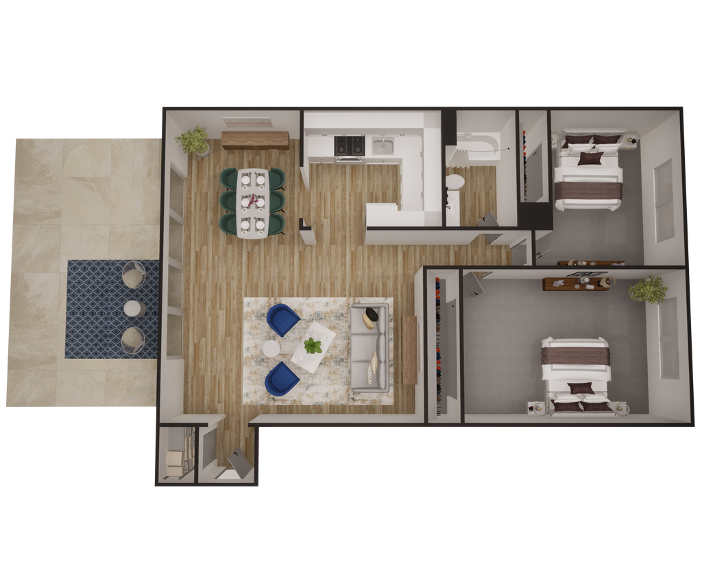 2 Beds, 1 Bath, 1057 sq ftAvailable NowModel Gallery