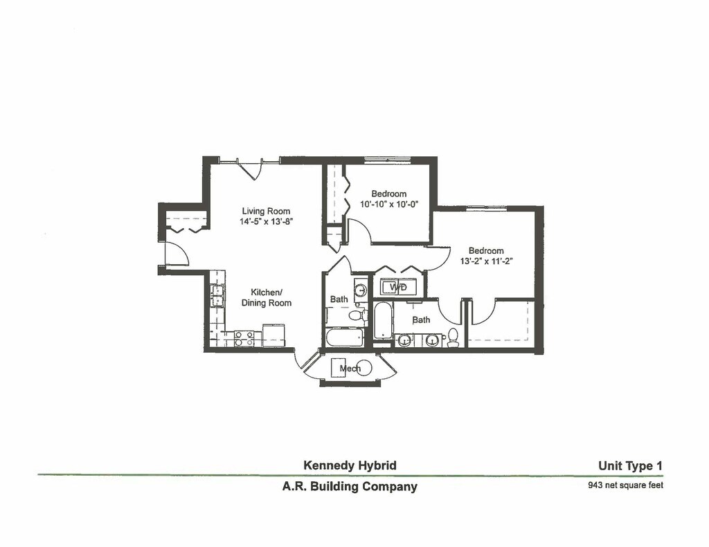 Hybrid Style 2 - 1 BR - Floorplan 2 Style 1A - 1BR