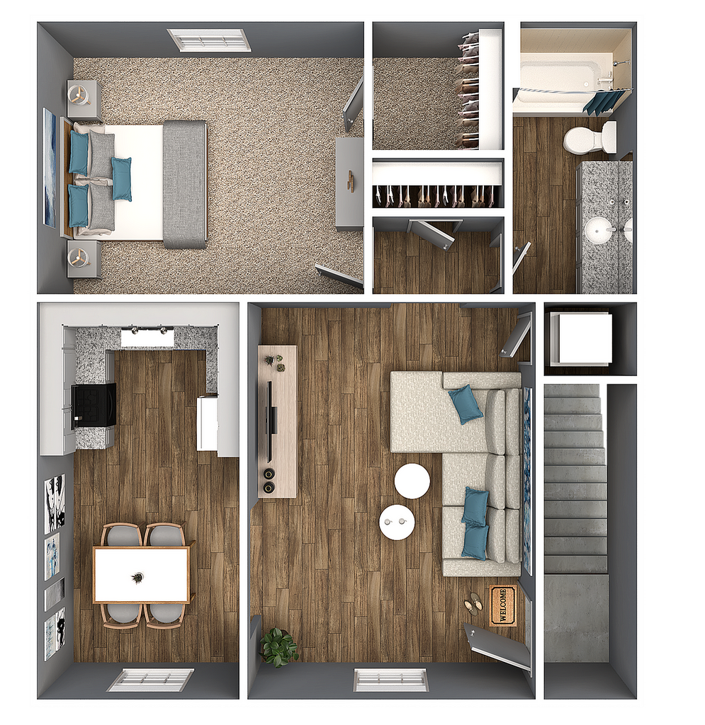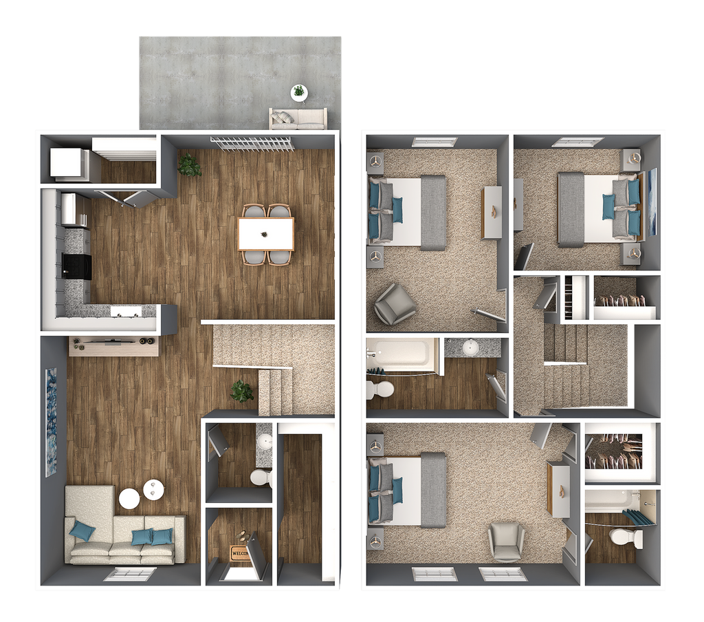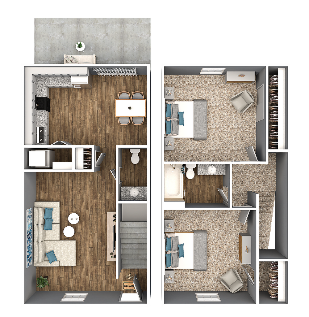 2 Bedroom 1.5 Bath Townhome - Floorplan 2 Bedroom 1.5 Bath Townhome - 3D Tour 3 Bedrooms