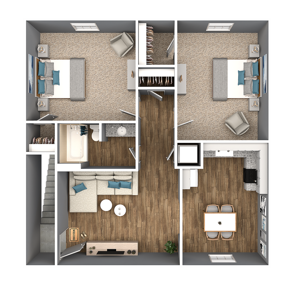Apartment Model: 2 Bedroom 1.5 Bath TownhomeFrom $1,2992 Bedroom, 1.5 Bath, 1029 sq ftUnavailableFloorplans3D Tours![]()